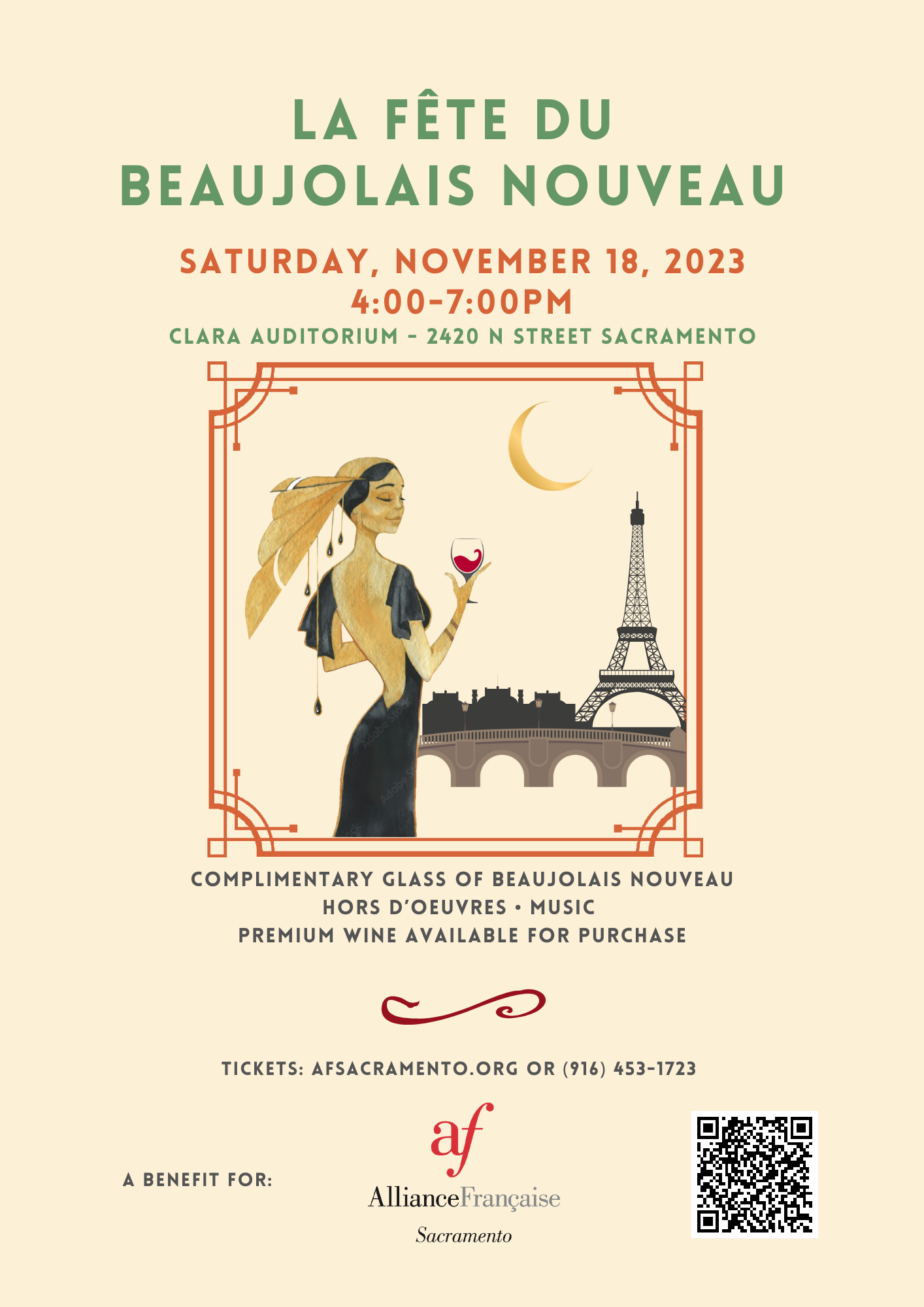 Our Fête du Beaujolais Nouveau will be held Saturday November 18, from 4:00-7:00pm at the ALLIANCE FRANÇAISE CLARA