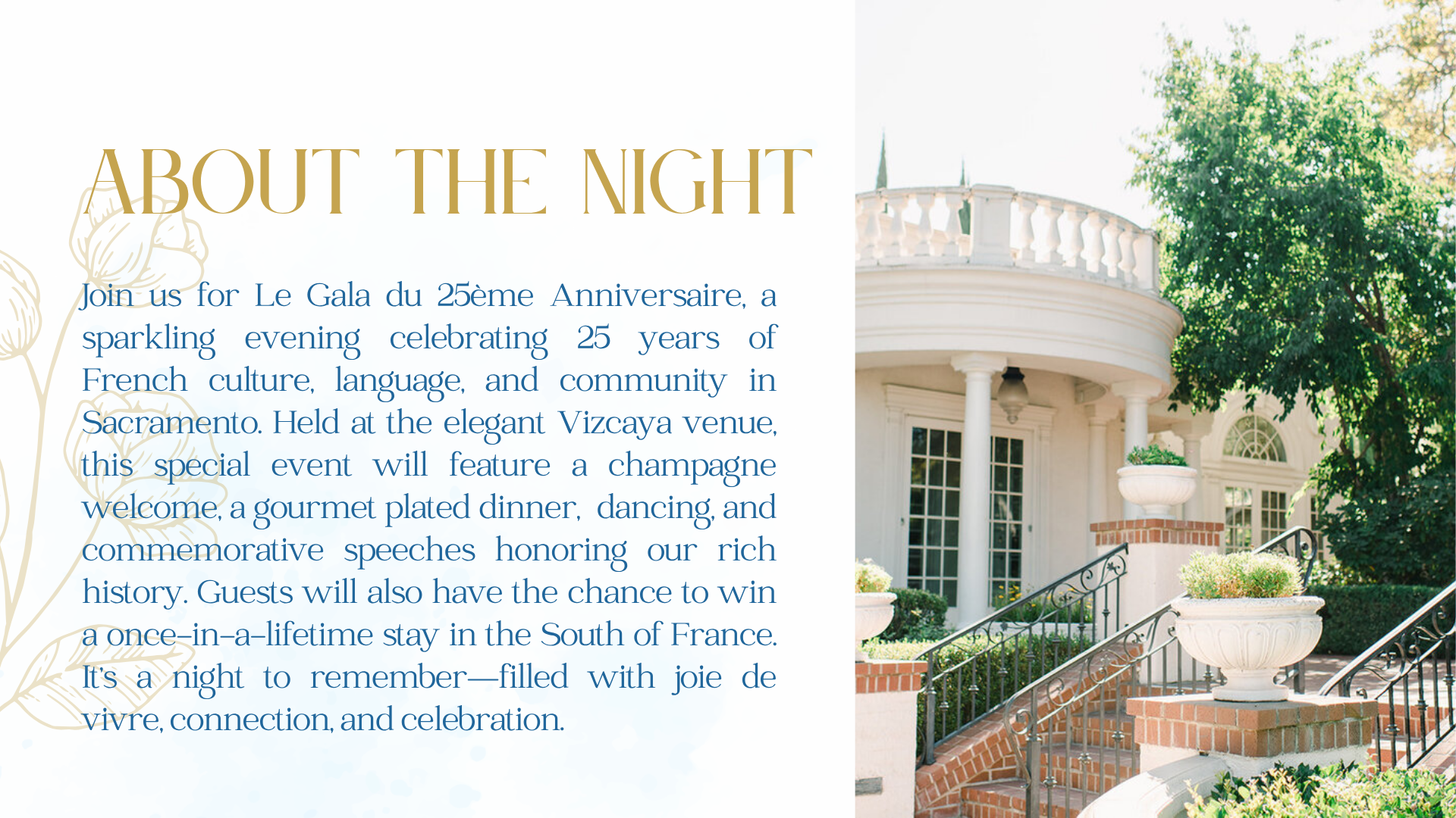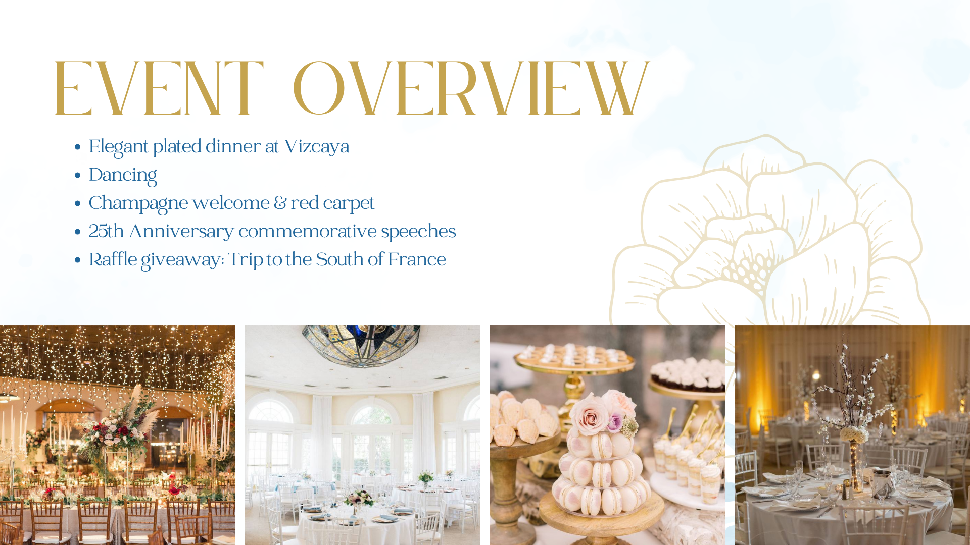 Cocktail or evening wear is encouraged; black tie optional for those who wish to make the night even more glamorous!